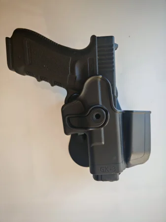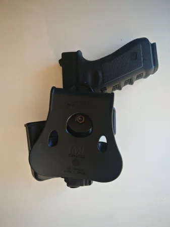 Dzień dobry, na sprzedaż mam kaburę IMI Defence do Glocka 19/17/45. Replika Glocka 17 na zdjęciach w celach poglądowych. Kabura z przyciskiem blokującym.