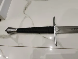 Nie jest to wersja dekoracyjna, a pełnoprawny i wytrzymały miecz do normalnego użytku – treningi, sparingi, pokazy. Kupiłem z myślą o użytkowaniu i rozpoczęciu treningów HEMA, jednak plany się zmieniły. Miał zostać do dekoracji, ale chęć zwolnienia gotówki i miejsca przeważyła.