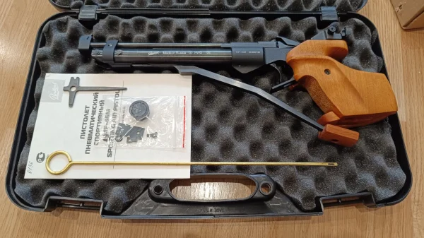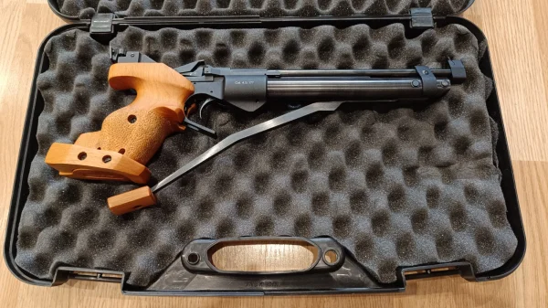 Do sprzedania wiatrówka PCA produkcji rosyjskiej IŻ-46M. Kaliber 4,5 mm. Rękojeść fabryczna, moletowanie wykonał Wojciech Multon, najlepszy fachowiec od rękojeści w Polsce. Pistolet wyprodukowany w 2020. Przebieg < 500 szt. Używany naprawdę sporadycznie. Bardzo wygodny spust z dużą możliwością regulacji (5 punktów regulacji). Ustawiony na ok. 650g. Szczerbinka w pełni regulowana w pionie i w poziomie. Do pistoletu dodaję wszystko co dał producent. Zamienne muszki, szczerbinkę, uszczelki oraz nową uszczelkę tłoka oraz oryginalne pudełko ze zgodnym nr fabrycznym. Walizkę również dodam zdecydowanemu kupującemu. Wysyłka możliwa po przedpłacie, najchętniej odbiór osobisty w Krakowie. Energia oczywiście < 17 J (producent podaje do 7,5 J).