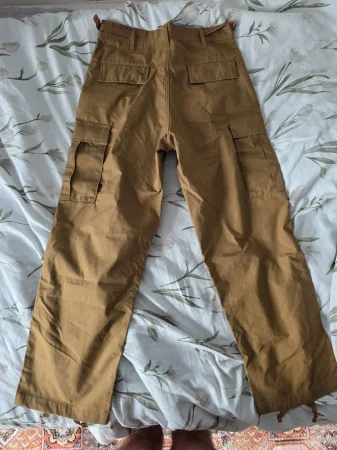 Właściwie nowe. Nie pamietam żebym je założył. Kupiłem dwie pary na BLACK FRIDAY w Militaria.pl. Miały byc na zapas ale schudłem sporo i teraz rozmiar S jest dla mnie luźny. Brak śladów użytkowania.