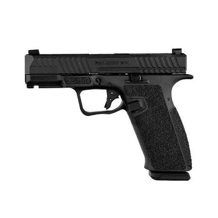 Falcon 9X posiada lufę o długości 4" (102 cm) oraz polimerowy szkielet z dłuższą ostrogą chwytu (beavertail). Sam chwyt posiada agresywną teksturę, która sprawia, że pistolet bardzo dobrze leży w dłoniach bez względu na to czy korzystamy z niego w rękawicach taktycznych, czy w przypadku mokrych czy ubrudzonych rąk. Z przodu chwytu znajdziemy specjalne nacięcia, a z tyłu mamy możliwość zastosowania wymiennych nakładek, które pozwalają dopasować jego rozmiar do naszych potrzeb i prefrencji.