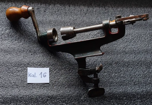 Na sprzedaż stara zawijarka / maszynka do elaboracji amunicji śrutowej w kalibrze 16 GA (16/70, 16/65 itp). Urządzenie pozwala na rollowanie krawędzi łuski, co pozwala ją zamknąć. Nadaje się do zawijania tradycyjnych łusek plastikowych lub papierowych. Wysyłka paczkomatem lub odbiór osobisty w Warszawie.