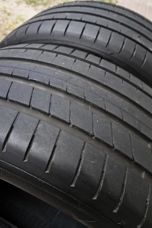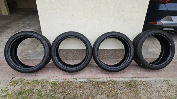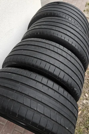 Nie pocięte, bez ubytków na ściankach, bez wybrzuszeń, trzymają ciśnienie. Opony klasy UHP, super przyczepne i dobrze się prowadzą.
