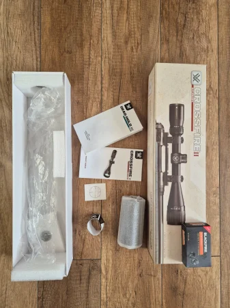 Sprzedam lunetę Vortex Crossfire II 6-18x44 1"AO BDC wraz z montażem na szynę dovetail (11 mm). Luneta ma regulację paralaksy oraz fajny krzyż celowniczy BDC. Używana na karabinku CZ 457 22lr. Strzelana niewiele. W zestawie wszystko co fabrycznie było w pudełku i jest widoczne na zdjęciu jako zestaw, sam karabinek nie jest przedmiotem sprzedaży.