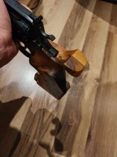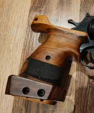Rękojeść do rewolwerów Alfa wykonana na zamówienie u Wojciecha Multona. Rozmiar L. Olejowana. Czarne paski to taśma przeciwpoślizgowa( możliwe usunięcie).