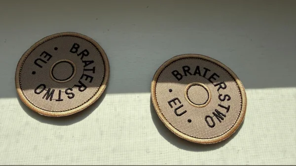 Na aukcji 20 sztuk naszywki BRATERSTWO.EU, średnica 8cm, rzep od dołu.