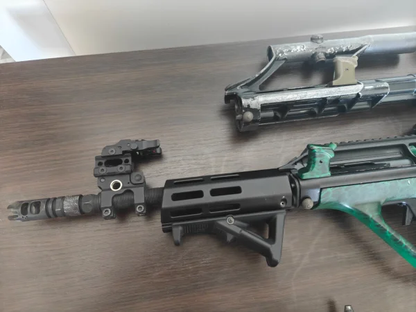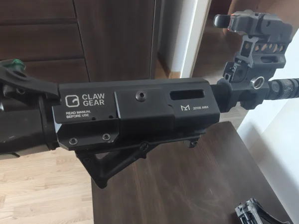 -konstrukcja "frankensteina" na lufę z szynami pod montaż akcesoriów
