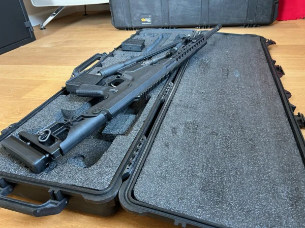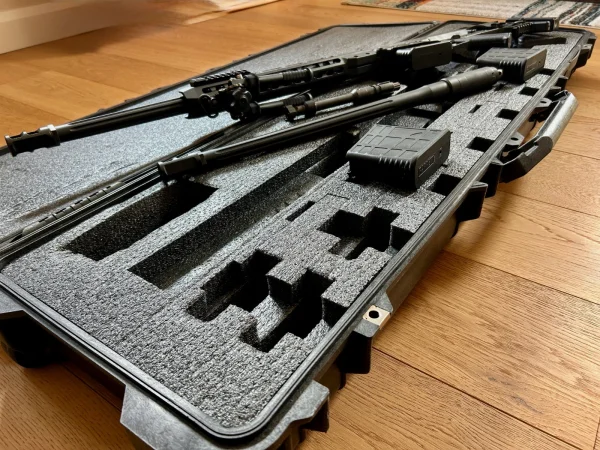 -Oryginalna walizka Barrett: Pancerny, polimerowy kufer z wypełnieniem typu "custom-cut", zaprojektowany tak, aby pomieścić karabin z optyką oraz wszystkie lufy i akcesoria.