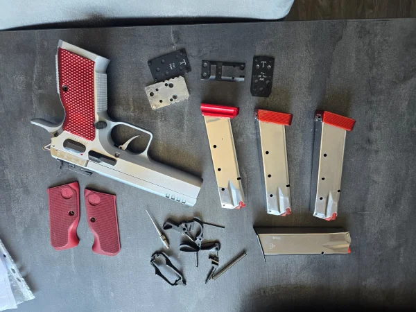 Sprzedam Tanfoglio Stock II OR, pistolet gotowy do dynamiki. Wymienione sprężyny, spust, chwyt, kurek i wiele innych. W zestawie cztery magazynki.