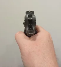 Są przetarcia powłoki, lekko skrzywiona muszka do wyprostowania.