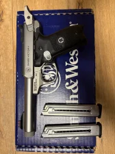 Sprzedam pistolet S&W victory kaliber 22 lr. Kupiony w 2023 roku, przebieg 1986 pestek. Dołożony zestaw TANDEMKROSS RACE GUN KIT S&W22 VICTORY - SILVER