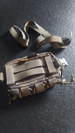 Kieszeń zamykana jest dwukierunkowym zamkiem błyskawicznym YKK, a wewnątrz znajduje się panel rzepowy pod wkład, pętla do zabezpieczenia akcesoriów, elastyczne taśmy i kieszeń z siatki do separacji elementów płaskich. Na zewnątrz przewidziano taśmy oraz linkę elastyczną ze ściągaczem do dopięcia lekkich akcesoriów, jak staza taktyczna.