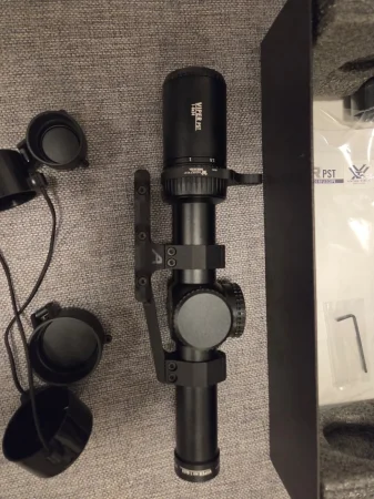 Luneta jak nowa, brak sladow użytkowania, oddałem 100 strzałów i zamieniłem na kolimator, bo strzelam na maks 100m. Kupiona w teleskopy.pl, najlepsza dożywotnia gwarancja vortex. Mogę dorzucić do niej orygnialną dzwignię za 230pln i widoczny rewelacyjny montaż aero ultralight za 550pln.