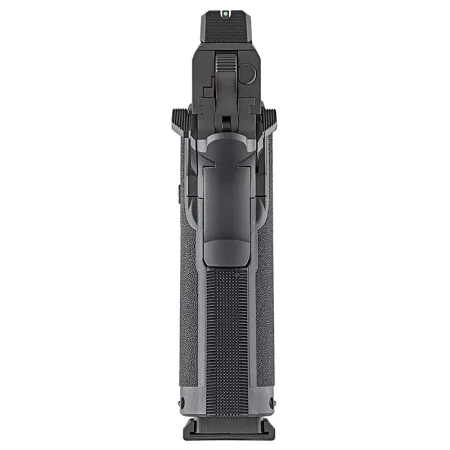 Colt 1911 wiecznie żywy :) obecnie mamy wysyp nowoczesnych wariancji na temat tego klasycznego pistoletu. Tym razem zasilany amunicją 9 mm, wyposażony w matchową lufę o długości 5", o ciężkim profilu. Lufa produkowana jest w technologii kucia na zimno. Konstrukcja - zamek i szkielet wykonane ze stali węglowej, dodatkowo pokryte czarną powłoką Cerakote. Urządzenie powrotne stanowi sprężyna osadzona na dwuczęściowej żerdzi.