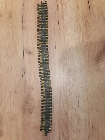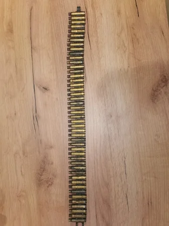 Taśma amunicyjna LKM kaliber 223. Ogniwa rozpryskowe spięte łuskami. Należy doliczyć przesyłkę do wylicytowabej kwoty.