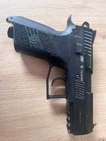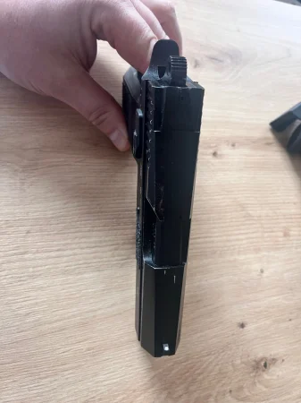 Sprzedam wiatrówkę CZ 75 P-07 na stalowe kulki 4,5 mm. Po wystrzale w pistolecie cofa się zamek, po wystrzelaniu magazynku zostaje w tylnym położeniu.