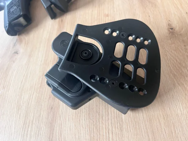 Pistolet, dwa magazynki, kabura z możliwością zmiany strony noszenia, zmiany kąta.