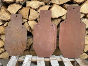 Blacha GONG IDPA A/C (30x60cm) z jednym kwadratowym otworem 13x13mm i dwoma fi 12mm wycięte laserem z blachy Hardox 500TUF grub. 10mm.