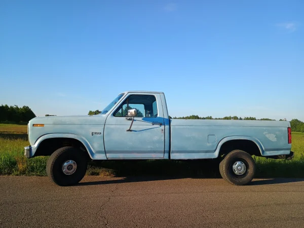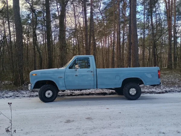 Potrzebne jakieś konkretne auto na dojazdy na strzelnicę? 1984 Ford F150 4x4 z silnikiem V8, 5.8L i manualną skrzynią biegów. Tylny most ze szperą. Auto po pełnej renowacji podwozia