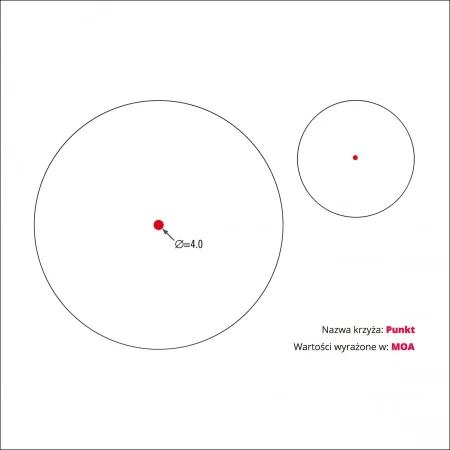 - brak błędu paralaksy - pozwala na szybkie oddanie strzału bez konieczności zamykania jednego oka, bez zjawiska parakaksy