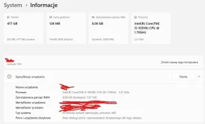 Procesor i5-10310U 4 rdzenie, 8 wątków, 1.70 GHz, turbo 4.40 GHz