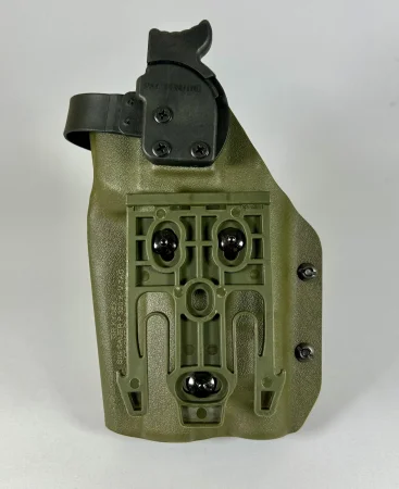 Kabura kompatybilna z kolimatorami Voprtex Defender oraz podobnymi gabarytowo (m. in. Holosun). Robiona pod latarkę Olight PL-3R Valkyrie, jednakże ze względu na podobne gabaryty inne modele jak SureFie X300 także powinny pasować. Kabura kompatybilna z powiększonym gas pedal.