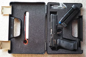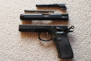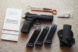 Na licytację wystawiam mój pierwszy pistolet centralnego zapłonu. Kupiony "rozumem"(nowy, sklepowy), polecany przez znajomych jako uniwersalne rozwiązanie na początek drogi strzeleckiej. Wystrzelane szacuję poniżej 2k. Po blisko 5 latach nie przewiduję rozwoju swojej kariery w kierunku zawodniczego IPSC, raczej kolekcjonerstwo. Szkoda, żeby taki model leżał w szafie i nie był wykorzystywany do tego, do czego został zaprojektowany. Oczywiście dobrze się nadaje też do strzelania statyki tarczowej na 25m, u mnie tylko do tego służył. Stan bardzo dobry, bez uszkodzeń, rys na oksydzie itp. Nigdy nie był noszony w kaburze (którą dodaję), nie był w żaden sposób modyfikowany, wymieniona jedynie żerdź na stalową. Zestaw fabryczny: