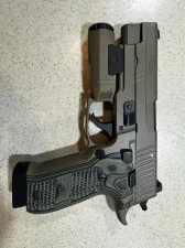 Sprzedam pistolet SigSauer p226 Elite Scorpion 9mm, z latarką Inforce w kolorze FDE. W komplecie 2 magazynki z aluminiową stopką ArmoryCraft +2 naboje (17)