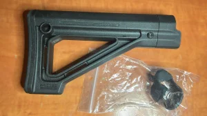 Używana kolba na mils-spec'ową buffertube. Jest to kolba stała - bez możliwości regulacji, ale przez to włosy z brody się nie wcinają w szczelinę pomiędzy buffertube a kolbą ;)