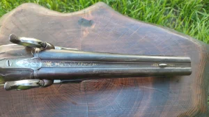 Dwulufowy pistolet czarnoprochowy, odprzodowo ładowany, rozdzielnego ładowania, typ kapiszonowy (ang. percussion cap pistol).