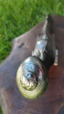 Pierwotnie pistolet skałkowy, przerobiony na kapiszonowy – widoczne cechy oryginalnej skałkowej konstrukcji (np. płaskie zamki z miejscem po panwiach).
