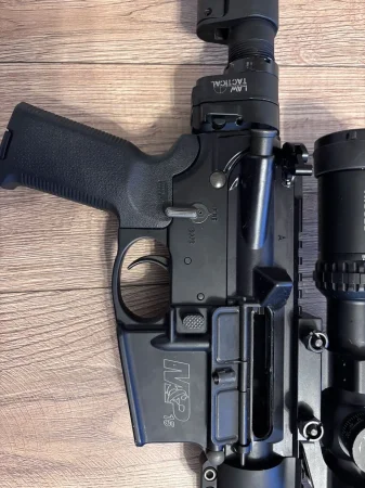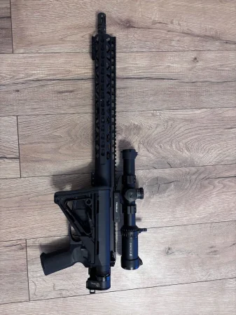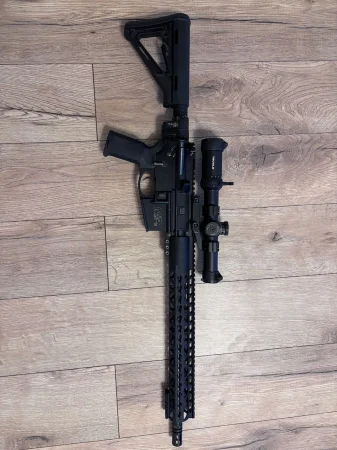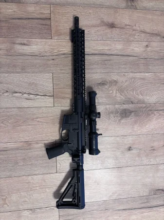 Sprzedam Karabinek S&W MP15 SPORT II kal. 223Rem/5,56x45mm, długość lufy: 16". Stan bardzo dobry, przebieg 500 - 700 kulek (mam inne jednostki więc mało strzelany). W karabinku wymienione/zamontowane: