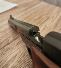 Kupiony 16.12.2024 w DesantArms w Ćwiklicach. Przebieg u mnie to ok. 100-120 pestek. Wcześniejszy przebieg nieznany, komora jednak nie jest sklepana. W mojej ocenie pistolet w stanie bardzo dobrym, ale to zostawiam już oczom kupującego. Wersja z chwytem dla praworęcznych.