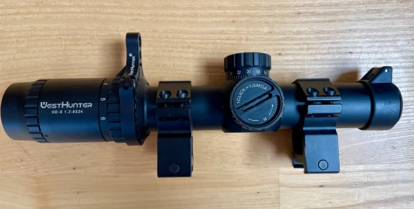 Sprzedam lunetę biegową wraz z montażem Westhunter HD-S 1.2-6x24 1/2 MOA w stanie bardzo dobrym. Używana sporadycznie. W zestawie luneta z montażem na szynę RIS 22 mm, dwie zaślepki (mniejsza jest ułamana), oryginalne opakowanie, instrukcja, ściereczka z mikrofibry, klucz.