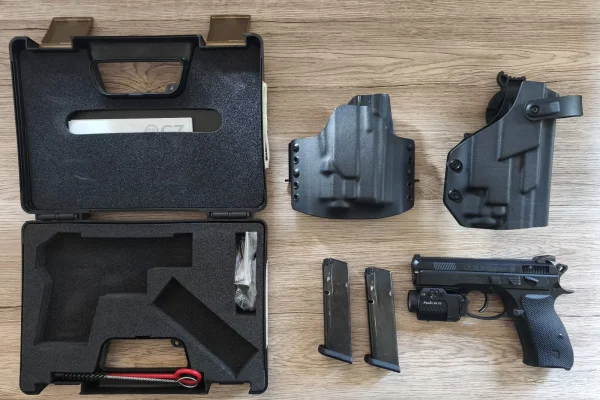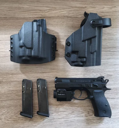 Na sprzedaż pistolet CZ 75 P-01 Omega kal. 9x19 mm wraz z latarką Fenix GL22 oraz dwoma kaburami.