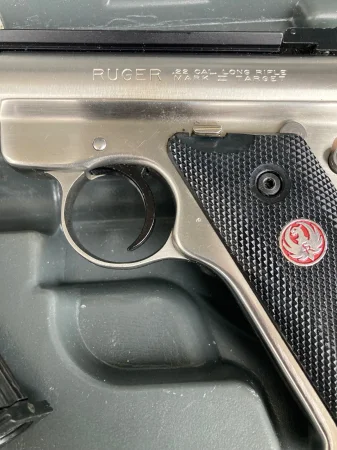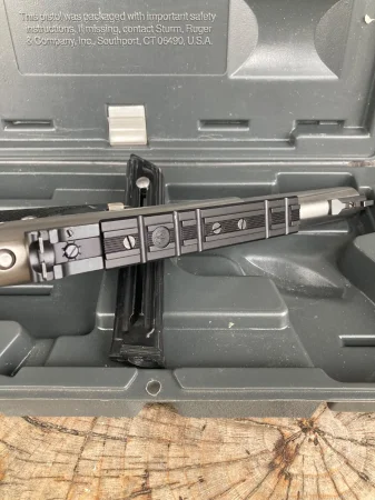 Pistolet Tiger Mark II Target w kalibrze .22lr to klasyczna broń samopowtarzalna ,zaprojektowana głównie z myślą o strzelectwie sportowym i rekreacyjnym.Pistolet posiada zamontowaną szynę to montażu kolimatora ,gdy zdejmiemy kolimator to szyna nie przeszkadza w korzystaniu z przyrządów mechanicznych.Egzemplarz wyprodukowany w 2002 roku w bardzo dobrym stanie.W zestawie jeden magazynek oryginalna walizka no i sprężynka która była w zestawie