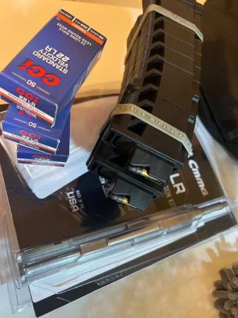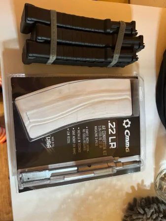 Sprzedam zestaw konwersji do karabinka, który pozwala na strzelanie amunicją .22 LR. Zestaw jest w pełni kompatybilny, wykonany z wysokiej jakości materiałów, łatwy w montażu. Był używany, wystrzelono około 300-400 sztuk amunicji. W cenie oddaję 3 pełne magazynki po 30 sztuk, plus dodatkowo około 100-120 sztuk amunicji w pudełku. Doskonały sposób na tańsze treningi strzeleckie. W razie pytań zapraszam do kontaktu!