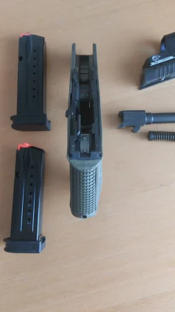 Mam na sprzedaż pistolet Steyr M9-A2 z trytowymi przyrządami celowniczymi.
