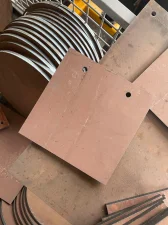 Kwadrat 15x15cm z okrągłym otworem / otworami fi 7,5mm wycięty laserem z blachy Hardox 450 grub. 6mm.