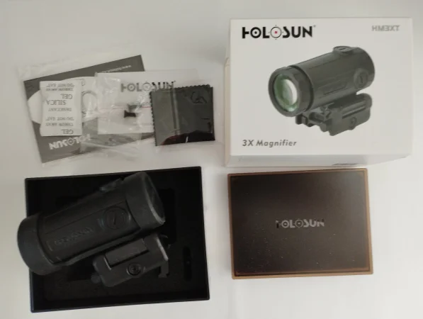 Sprzedam nowy, nie używany (raz przymierzony) oryginalny powiększalnik HOLOSUN HM3XT. Bez śladów użytkowania, dołączam fakturę zakupu ze Specshop (ze stycznia 2026r.) Wszystko jest w komplecie.
