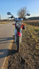 Jest to mój pierwszy motocykl, więc nie mogło się obyć bez przygód. Miałem nim małego szlifa przy jakiś 20km/h. Motocykl w nic nie uderzył, a uszkodzenia są czysto estetyczne (wszystko przyją gmol widoczny na zdjęciach). Najbardziej ucierpiał tylny kierunek, który jest widoczny na zdjęciach.