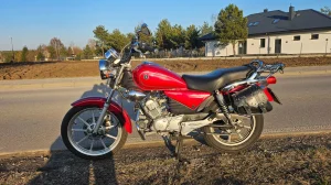 Na sprzedaż mój motocykl czyli Yamaha YBR 125 custom z 2011r. Motocykl sprowadzony 2 sezony temu z Francji z przebiegiem 13000km. Jestem pierwszym właścicielem w kraju. Po sprowadzeniu wymienione były wszystkie płyny i filtry, zrobione lagi, przewód hamulcowy, napęd, wybierak i przednia opona. Motocykl gotowy na sezon, wszystko sprawne. Sakwa widoczna na zdjęciach jest częścią zestawu.