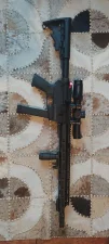 Chwyt i kolba założona od Rugera, chwyt przedni na m-loku, montaż do pasa, przednia dolna szyna picatiny również na mloku, można zdjąć, dźwignia przeładowania dwustronna od chińczyka |(oryginalną dorzucam), w zestawie z 33 nabojowym magazynkiem.