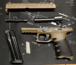Pistolet w fabrycznym ukompletowaniu (2 magazynki, 3 wymienne nakładki chwytu, walizka, instrukcja). Plus gumowa nakładka chwytu od majfrenda - mogę zdjąć jeśli się nie podoba :)
