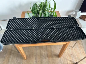 Futerał / walizka na broń produkcji włoskiej na 4 metalowych zawiasach , wyłożona pianką. Wymiary 125cm , 30cm, 10cm. Stan bardzo dobry gdzieniegdzie malusieńkie ryski.