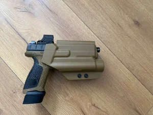 Sprzedam Apx a0 kupione w zeszłym roku z przebiegiem ok 800 kulek. Zmieniony chwyt od A1 wraz ze stipplingiem. 3 magazynki powiększone, kabura kydex od lewego, kolimator zamknięty z 3 znakami celowniczymi CVlife z panelem słonecznym, zielona sprężyna iglicy oraz stalowa żerdź ze sprężyną Toni System.Kompensator nie jest w komplecie.