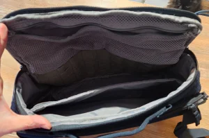 Torba fajna, można naprawdę dopakować, mieści się spora butla z boku, na górnej klapie mała ale szeroka kieszeń wyściełana miękko - idealna na okulary. Z przodu też długa kieszeń do której można wrzucić niekoniecznie bardzo płaskie rzeczy. W głównej komorze bez problemu mieściło mi się bezlustro, dron w boksie ochronnym, battery pack i pilot sterowania. Na plecach jest dodatkowa płaska kieszeń z uchwytem na pistolet do szybkiego dobycia, jest możliwość dorzepienia dodatkowych uchwytów. Warto też dodać że wymiarowo mieści się w Ryanairowskich wymiarach bagażu podręcznego.