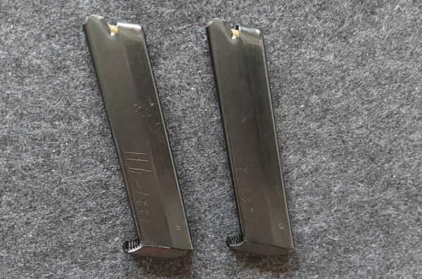 Pistolet w bardzo ładnej kondycji. Dwa numerowane elektropisakiem magazynki. Oksyda, stan lufy i komory, okładki chwytu bez zarzutu. Odbiór w Łodzi, weekendowe zawody na W23 w Wa-wie, jeżdżę trochę po Polsce i można się dogadać.