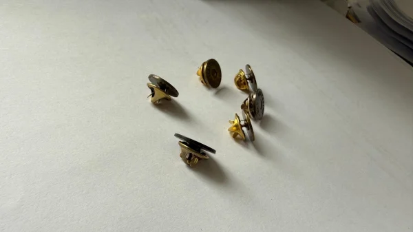 Przypinka z logo Braterstwo.eu. Leżą w szafie jakiś czas i są delikatnie różne (część ciemniejsza, część większa).