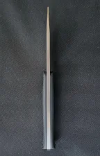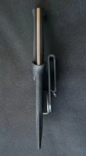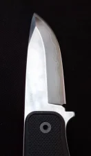 2. Klinga wykonana z laminatu: środek z twardej a jednocześnie odpornej na wykruszenia stali S35VN, zewnętrzne płazy z bardziej elastycznej stali. W oryginale stal Elmax z którą Fallkniven średnio poradził sobie przy obróbce termicznej, skupił się na bardzo dużej twardości kosztem odporności na wykruszenia (polecam film Pana Forysia na YT).
